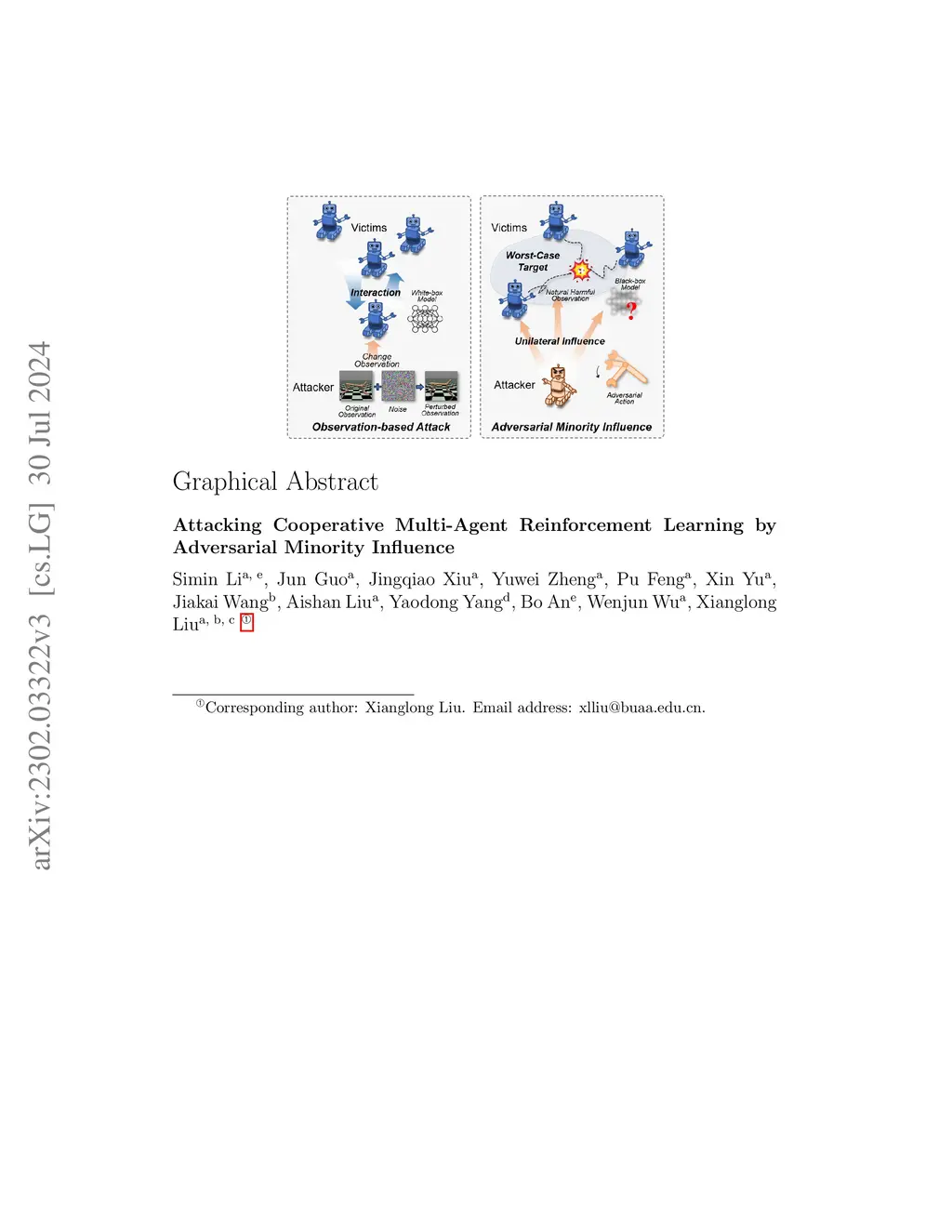 This study probes the vulnerabilities of cooperative multi-agent reinforcement learning (c-MARL) under adversarial attacks, a critical determinant of c-MARL's worst-case performance prior to real-world implementation. Current observation-based attacks, constrained by white-box assumptions, overlook c-MARL's complex multi-agent interactions and cooperative objectives, resulting in impractical and limited attack capabilities. To address these shortcomes, we propose Adversarial Minority Influence (AMI), a practical and strong for c-MARL. AMI is a practical black-box attack and can be launched without knowing victim parameters. AMI is also strong by considering the complex multi-agent interaction and the cooperative goal of agents, enabling a single adversarial agent to unilaterally misleads majority victims to form targeted worst-case cooperation. This mirrors minority influence phenomena in social psychology. To achieve maximum deviation in victim policies under complex agent-wise interactions, our unilateral attack aims to characterize and maximize the impact of the adversary on the victims. This is achieved by adapting a unilateral agent-wise relation metric derived from mutual information, thereby mitigating the adverse effects of victim influence on the adversary. To lead the victims into a jointly detrimental scenario, our targeted attack deceives victims into a long-term, cooperatively harmful situation by guiding each victim towards a specific target, determined through a trial-and-error process executed by a reinforcement learning agent. Through AMI, we achieve the first successful attack against real-world robot swarms and effectively fool agents in simulated environments into collectively worst-case scenarios, including Starcraft II and Multi-agent Mujoco. The source code and demonstrations can be found at: https://github.com/DIG-Beihang/AMI.