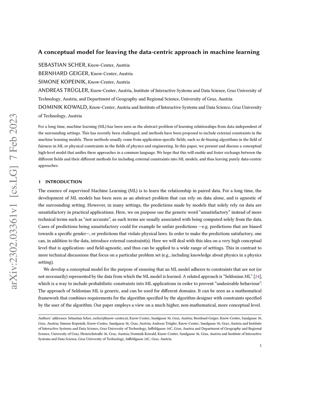 For a long time, machine learning (ML) has been seen as the abstract problem of learning relationships from data independent of the surrounding settings. This has recently been challenged, and methods have been proposed to include external constraints in the machine learning models. These methods usually come from application-specific fields, such as de-biasing algorithms in the field of fairness in ML or physical constraints in the fields of physics and engineering. In this paper, we present and discuss a conceptual high-level model that unifies these approaches in a common language. We hope that this will enable and foster exchange between the different fields and their different methods for including external constraints into ML models, and thus leaving purely data-centric approaches.