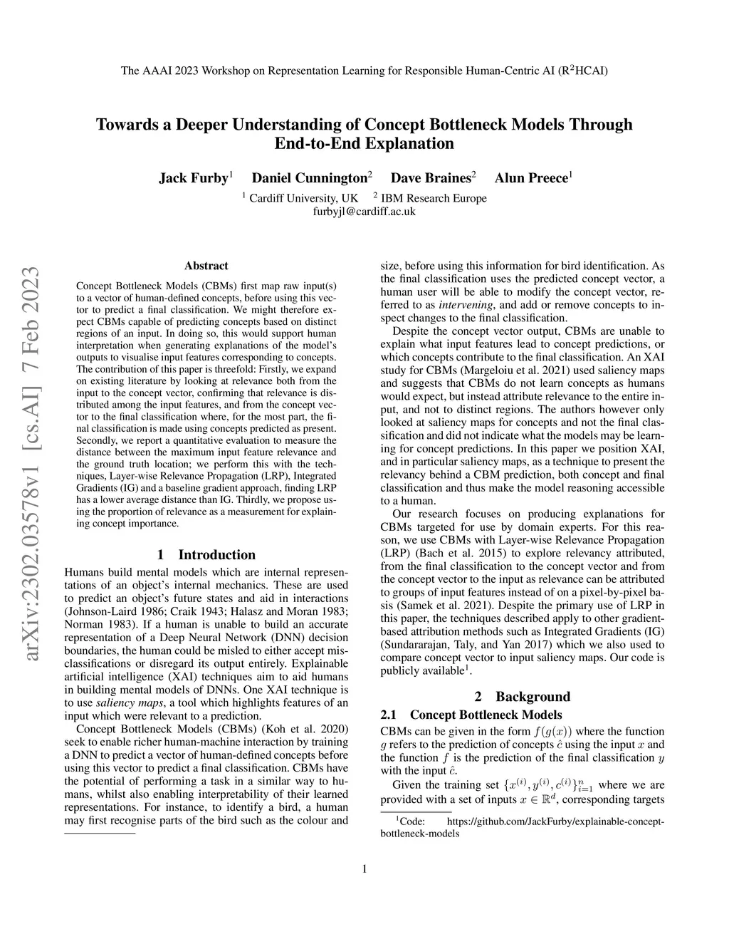Concept Bottleneck Models (CBMs) first map raw input(s) to a vector of human-defined concepts, before using this vector to predict a final classification. We might therefore expect CBMs capable of predicting concepts based on distinct regions of an input. In doing so, this would support human interpretation when generating explanations of the model's outputs to visualise input features corresponding to concepts. The contribution of this paper is threefold: Firstly, we expand on existing literature by looking at relevance both from the input to the concept vector, confirming that relevance is distributed among the input features, and from the concept vector to the final classification where, for the most part, the final classification is made using concepts predicted as present. Secondly, we report a quantitative evaluation to measure the distance between the maximum input feature relevance and the ground truth location; we perform this with the techniques, Layer-wise Relevance Propagation (LRP), Integrated Gradients (IG) and a baseline gradient approach, finding LRP has a lower average distance than IG. Thirdly, we propose using the proportion of relevance as a measurement for explaining concept importance.