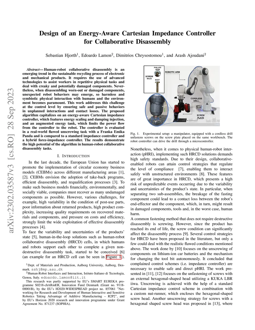 Design of an Energy-Aware Cartesian Impedance Controller for