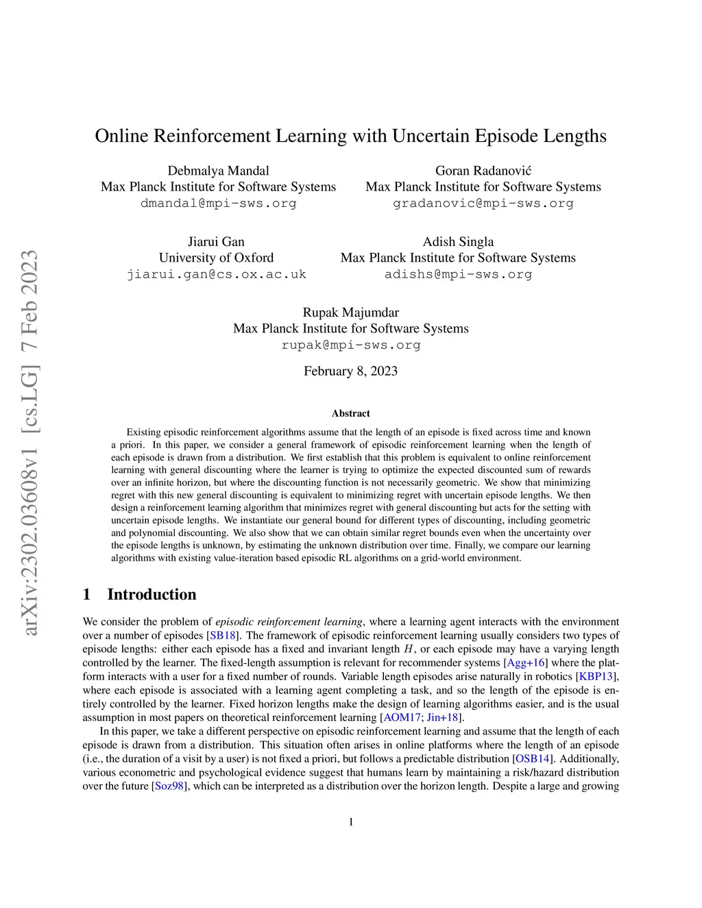 Online Reinforcement Learning with Uncertain Episode Lengths