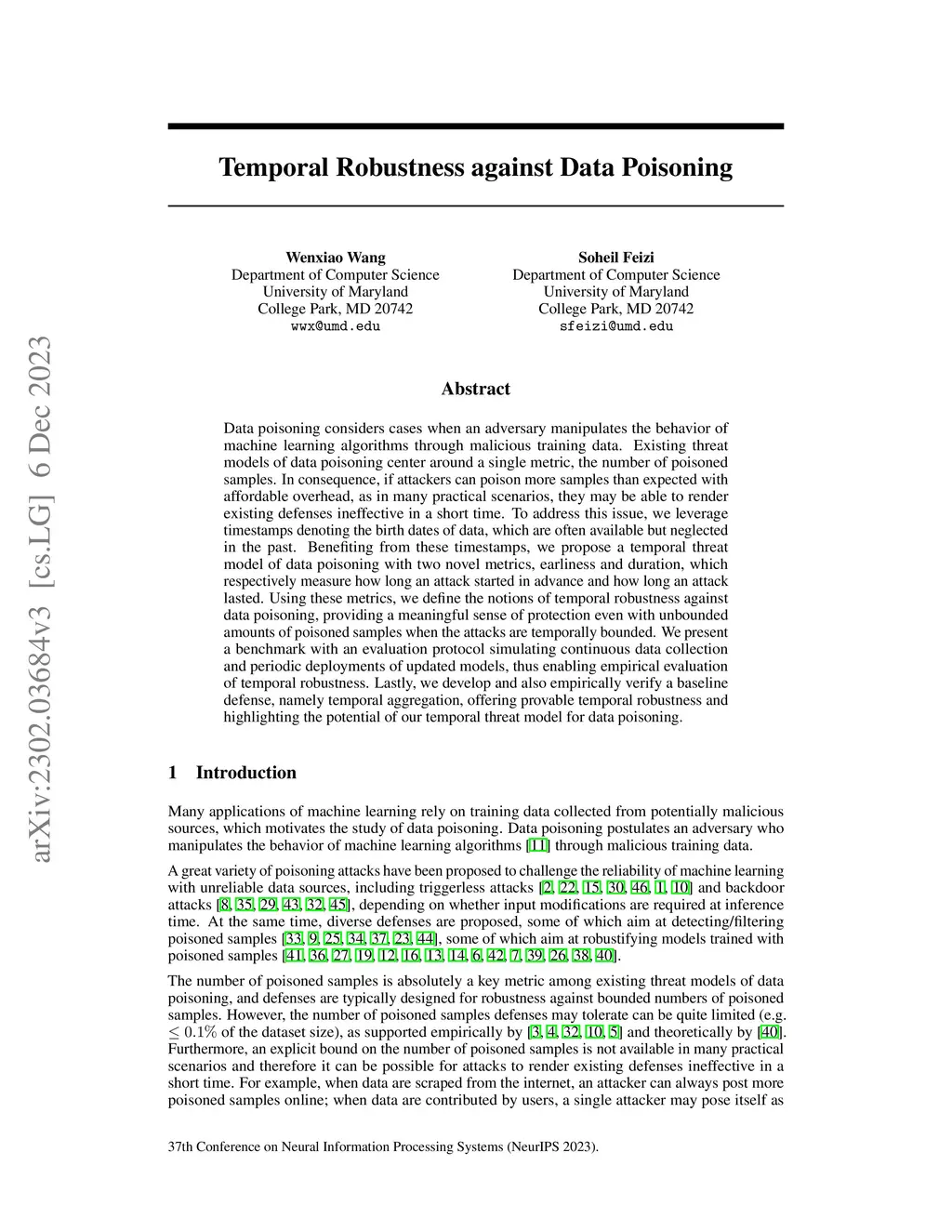 Data poisoning considers cases when an adversary maliciously inserts and removes training data to manipulate the behavior of machine learning algorithms. Traditional threat models of data poisoning center around a single metric, the number of poisoned samples. In consequence, existing defenses are essentially vulnerable in practice when poisoning more samples remains a feasible option for attackers. To address this issue, we leverage timestamps denoting the birth dates of data, which are often available but neglected in the past. Benefiting from these timestamps, we propose a temporal threat model of data poisoning and derive two novel metrics, earliness and duration, which respectively measure how long an attack started in advance and how long an attack lasted. With these metrics, we define the notions of temporal robustness against data poisoning, providing a meaningful sense of protection even with unbounded amounts of poisoned samples. We present a benchmark with an evaluation protocol simulating continuous data collection and periodic deployments of updated models, thus enabling empirical evaluation of temporal robustness. Lastly, we develop and also empirically verify a baseline defense, namely temporal aggregation, offering provable temporal robustness and highlighting the potential of our temporal modeling of data poisoning.