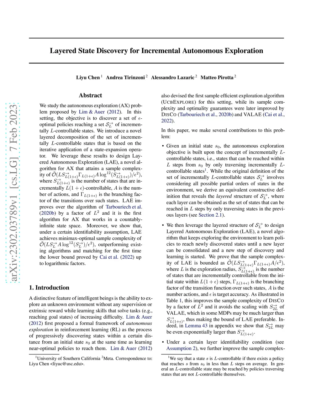 We study the autonomous exploration (AX) problem proposed by Lim & Auer (2012). In this setting, the objective is to discover a set of -optimal policies reaching a set of incrementally -controllable states. We introduce a novel layered decomposition of the set of incrementally -controllable states that is based on the iterative application of a state-expansion operator. We leverage these results to design Layered Autonomous Exploration (LAE), a novel algorithm for AX that attains a sample complexity of , where is the number of states that are incrementally -controllable, is the number of actions, and is the branching factor of the transitions over such states. LAE improves over the algorithm of Tarbouriech et al. (2020a) by a factor of and it is the first algorithm for AX that works in a countably-infinite state space. Moreover, we show that, under a certain identifiability assumption, LAE achieves minimax-optimal sample complexity of , outperforming existing algorithms and matching for the first time the lower bound proved by Cai et al. (2022) up to logarithmic factors.
