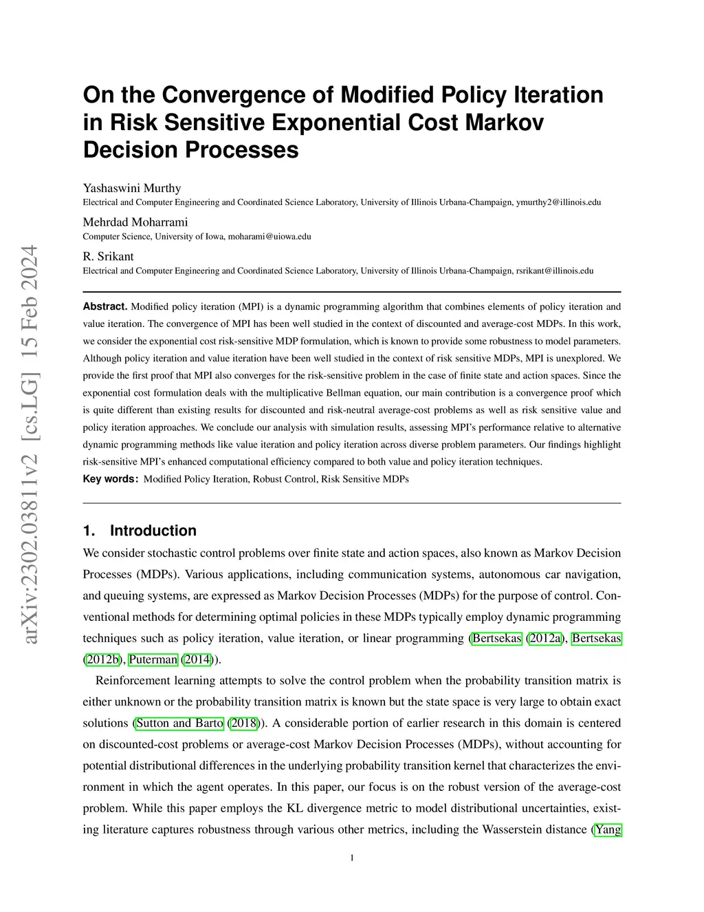 On the Convergence of Modified Policy Iteration in Risk Sensitive