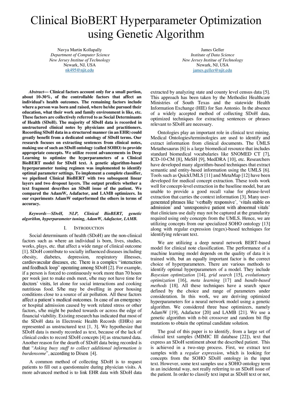 Clinical BioBERT Hyperparameter Optimization using Genetic Algorithm