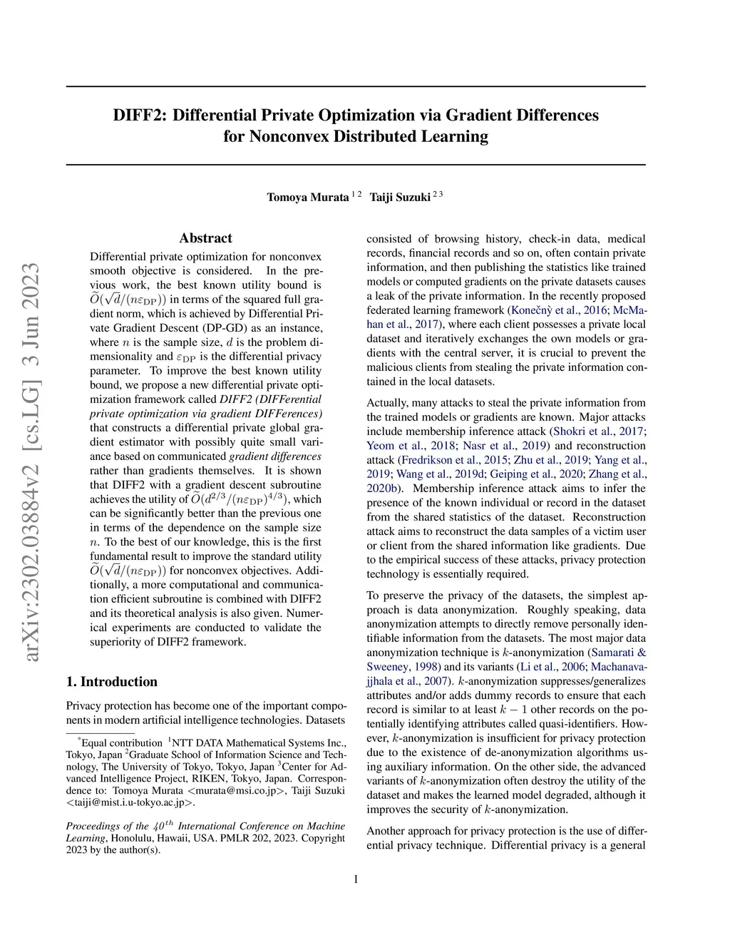 DIFF2: Differential Private Optimization via Gradient Differences for