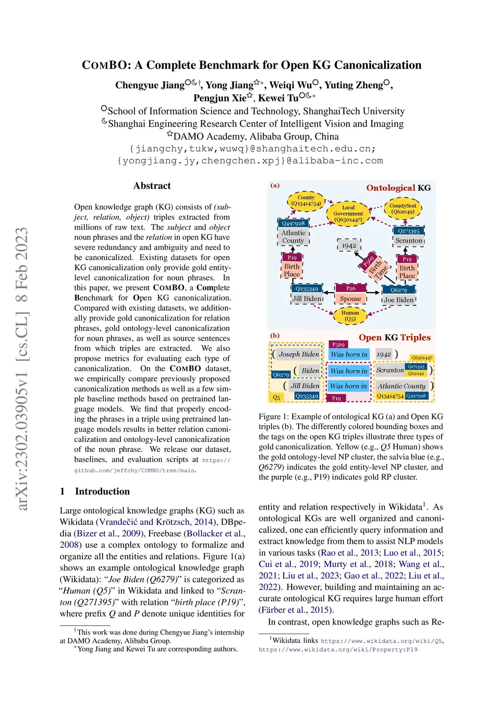 COMBO: A Complete Benchmark for Open KG Canonicalization