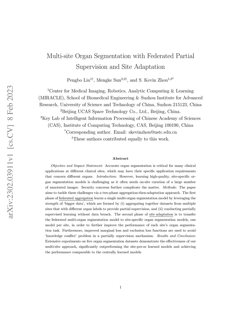 Objective and Impact Statement: Accurate organ segmentation is critical for many clinical applications at different clinical sites, which may have their specific application requirements that concern different organs. Introduction: However, learning high-quality, site-specific organ segmentation models is challenging as it often needs on-site curation of a large number of annotated images. Security concerns further complicate the matter. Methods: The paper aims to tackle these challenges via a two-phase aggregation-then-adaptation approach. The first phase of federated aggregation learns a single multi-organ segmentation model by leveraging the strength of 'bigger data', which are formed by (i) aggregating together datasets from multiple sites that with different organ labels to provide partial supervision, and (ii) conducting partially supervised learning without data breach. The second phase of site adaptation is to transfer the federated multi-organ segmentation model to site-specific organ segmentation models, one model per site, in order to further improve the performance of each site's organ segmentation task. Furthermore, improved marginal loss and exclusion loss functions are used to avoid 'knowledge conflict' problem in a partially supervision mechanism. Results and Conclusion: Extensive experiments on five organ segmentation datasets demonstrate the effectiveness of our multi-site approach, significantly outperforming the site-per-se learned models and achieving the performance comparable to the centrally learned models.
