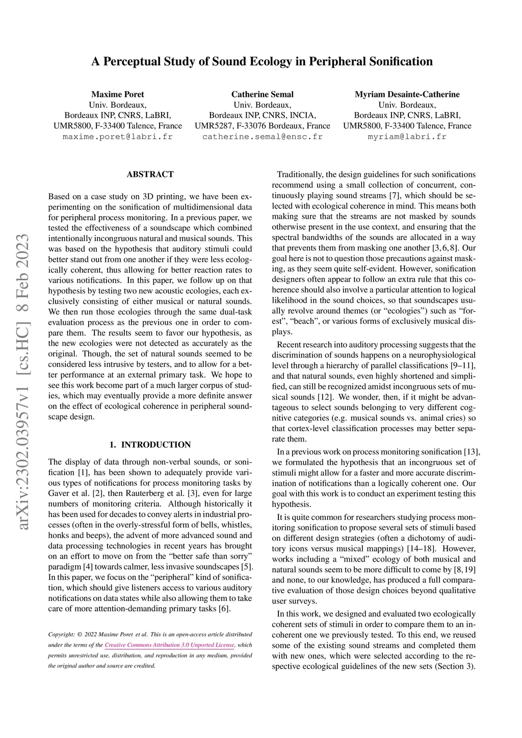A Perceptual Study of Sound Ecology in Peripheral Sonification