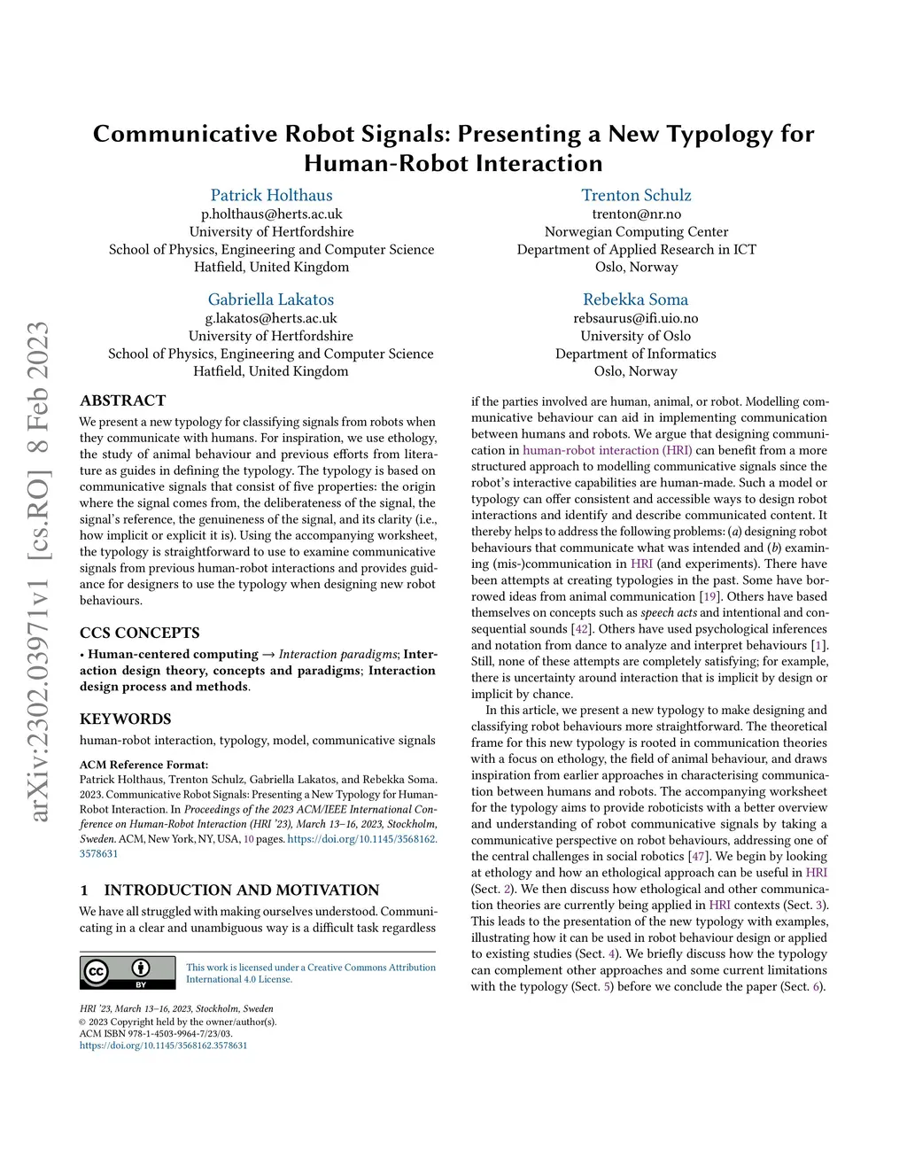 IEEE/ACM International Conference on Human-Robot Interaction (HRI), 2023
