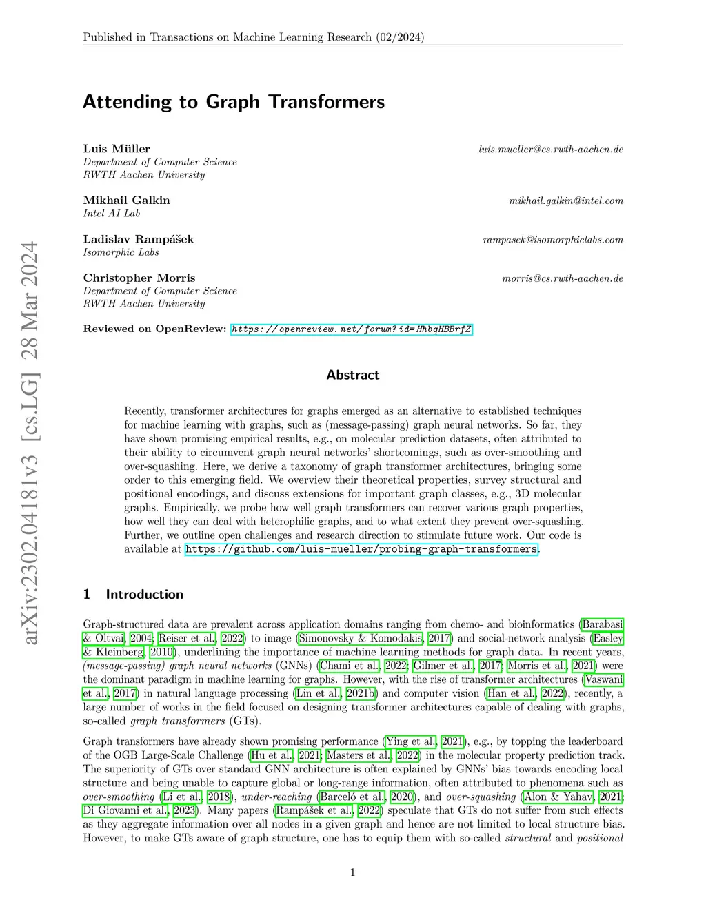 Recently, transformer architectures for graphs emerged as an alternative to established techniques for machine learning with graphs, such as (message-passing) graph neural networks. So far, they have shown promising empirical results, e.g., on molecular prediction datasets, often attributed to their ability to circumvent graph neural networks' shortcomings, such as over-smoothing and over-squashing. Here, we derive a taxonomy of graph transformer architectures, bringing some order to this emerging field. We overview their theoretical properties, survey structural and positional encodings, and discuss extensions for important graph classes, e.g., 3D molecular graphs. Empirically, we probe how well graph transformers can recover various graph properties, how well they can deal with heterophilic graphs, and to what extent they prevent over-squashing. Further, we outline open challenges and research direction to stimulate future work. Our code is available at https://github.com/luis-mueller/probing-graph-transformers.