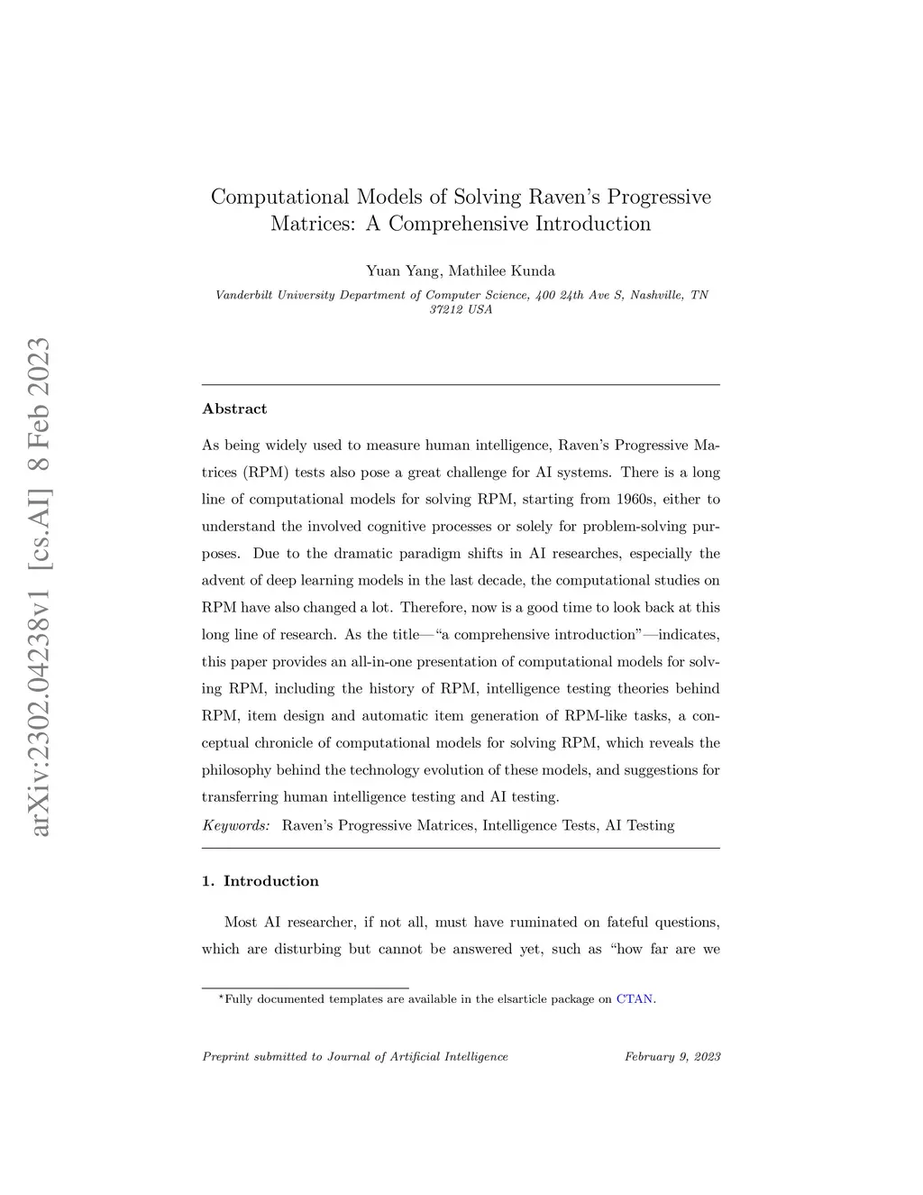 As being widely used to measure human intelligence, Raven's Progressive Matrices (RPM) tests also pose a great challenge for AI systems. There is a long line of computational models for solving RPM, starting from 1960s, either to understand the involved cognitive processes or solely for problem-solving purposes. Due to the dramatic paradigm shifts in AI researches, especially the advent of deep learning models in the last decade, the computational studies on RPM have also changed a lot. Therefore, now is a good time to look back at this long line of research. As the title -- ``a comprehensive introduction'' -- indicates, this paper provides an all-in-one presentation of computational models for solving RPM, including the history of RPM, intelligence testing theories behind RPM, item design and automatic item generation of RPM-like tasks, a conceptual chronicle of computational models for solving RPM, which reveals the philosophy behind the technology evolution of these models, and suggestions for transferring human intelligence testing and AI testing.