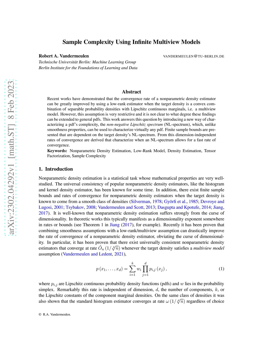Recent works have demonstrated that the convergence rate of a nonparametric density estimator can be greatly improved by using a low-rank estimator when the target density is a convex combination of separable probability densities with Lipschitz continuous marginals, i.e. a multiview model. However, this assumption is very restrictive and it is not clear to what degree these findings can be extended to general pdfs. This work answers this question by introducing a new way of characterizing a pdf's complexity, the non-negative Lipschitz spectrum (NL-spectrum), which, unlike smoothness properties, can be used to characterize virtually any pdf. Finite sample bounds are presented that are dependent on the target density's NL-spectrum. From this dimension-independent rates of convergence are derived that characterize when an NL-spectrum allows for a fast rate of convergence.