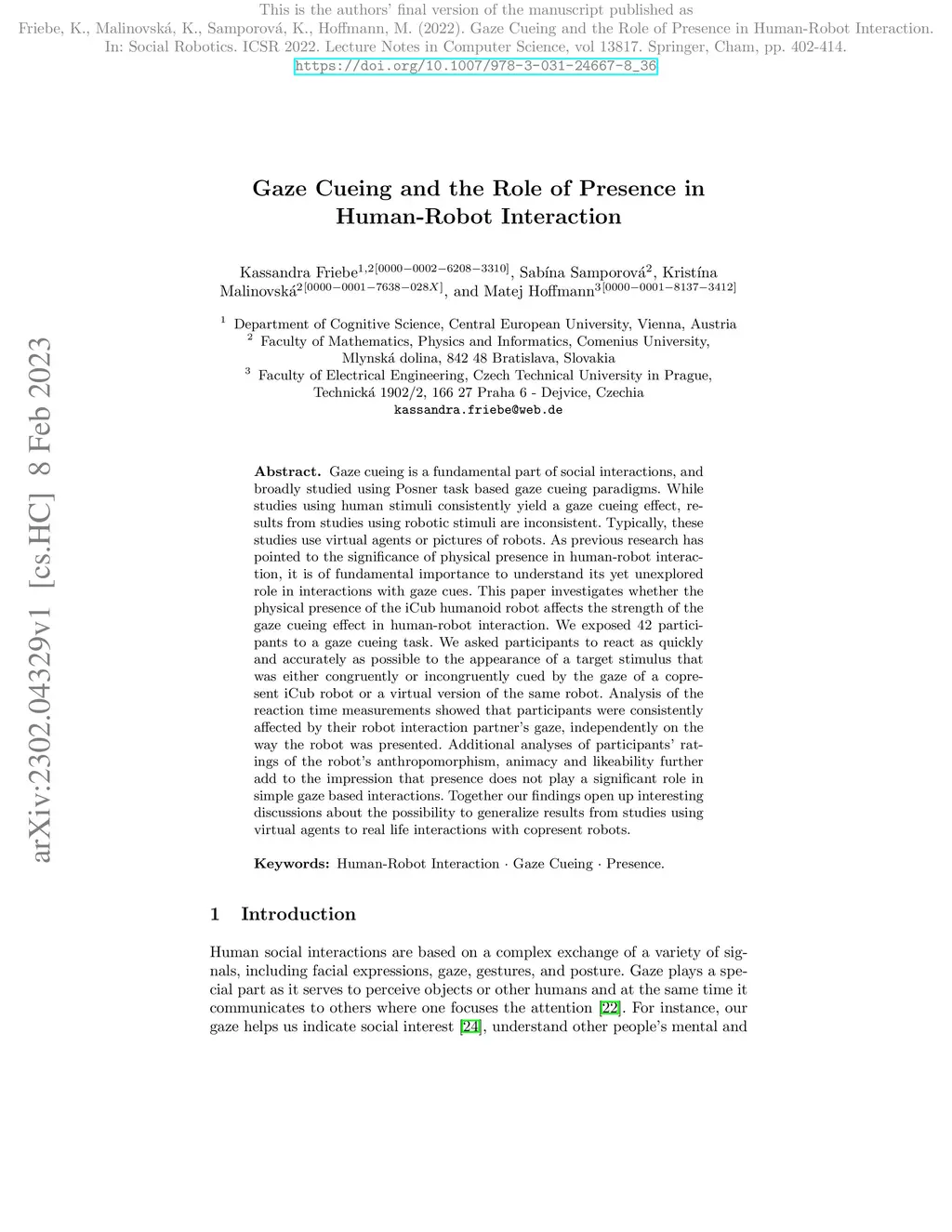 Gaze Cueing and the Role of Presence in Human-Robot Interaction