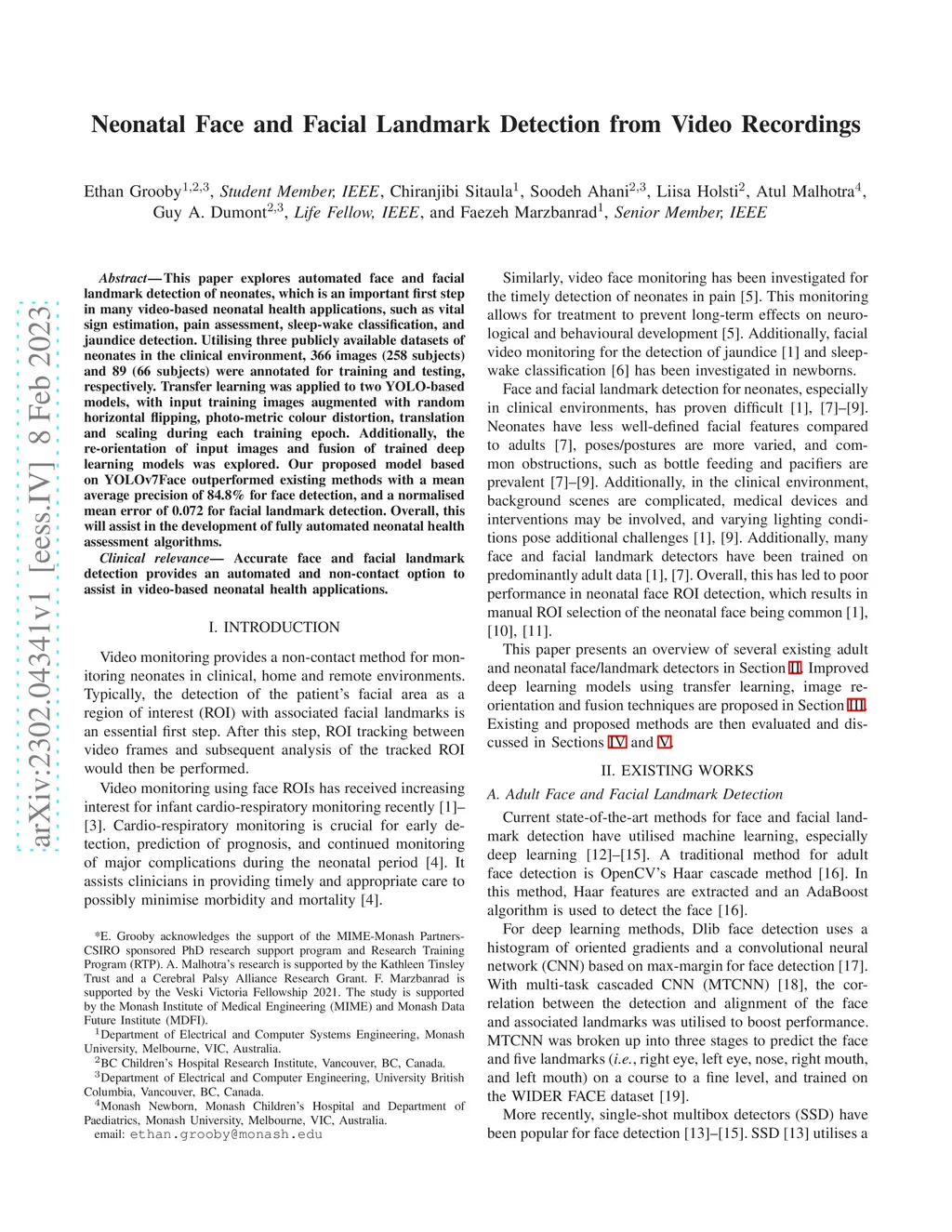 Neonatal Face and Facial Landmark Detection from Video Recordings