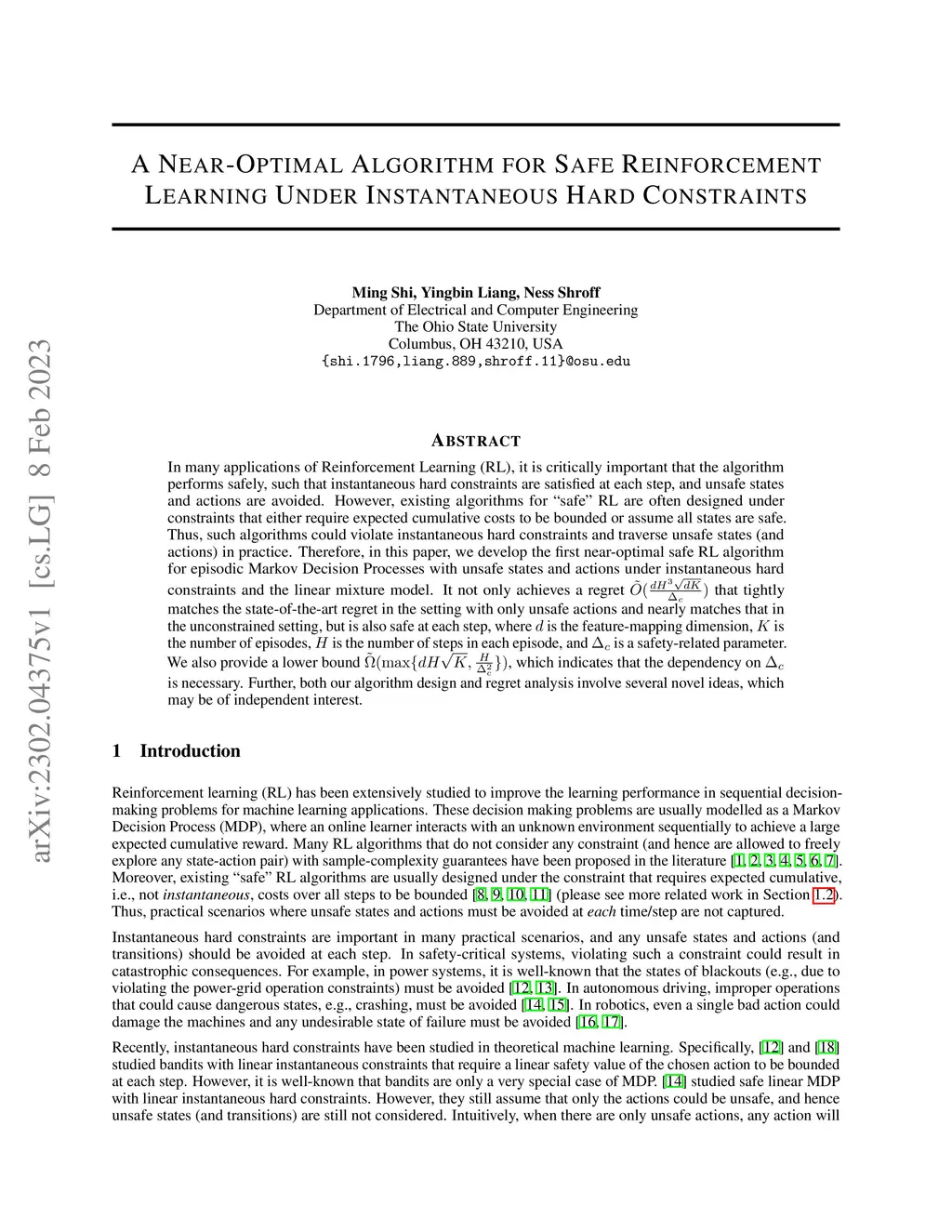 In many applications of Reinforcement Learning (RL), it is critically important that the algorithm performs safely, such that instantaneous hard constraints are satisfied at each step, and unsafe states and actions are avoided. However, existing algorithms for ''safe'' RL are often designed under constraints that either require expected cumulative costs to be bounded or assume all states are safe. Thus, such algorithms could violate instantaneous hard constraints and traverse unsafe states (and actions) in practice. Therefore, in this paper, we develop the first near-optimal safe RL algorithm for episodic Markov Decision Processes with unsafe states and actions under instantaneous hard constraints and the linear mixture model. It not only achieves a regret that tightly matches the state-of-the-art regret in the setting with only unsafe actions and nearly matches that in the unconstrained setting, but is also safe at each step, where is the feature-mapping dimension, is the number of episodes, is the number of steps in each episode, and is a safety-related parameter. We also provide a lower bound , which indicates that the dependency on is necessary. Further, both our algorithm design and regret analysis involve several novel ideas, which may be of independent interest.