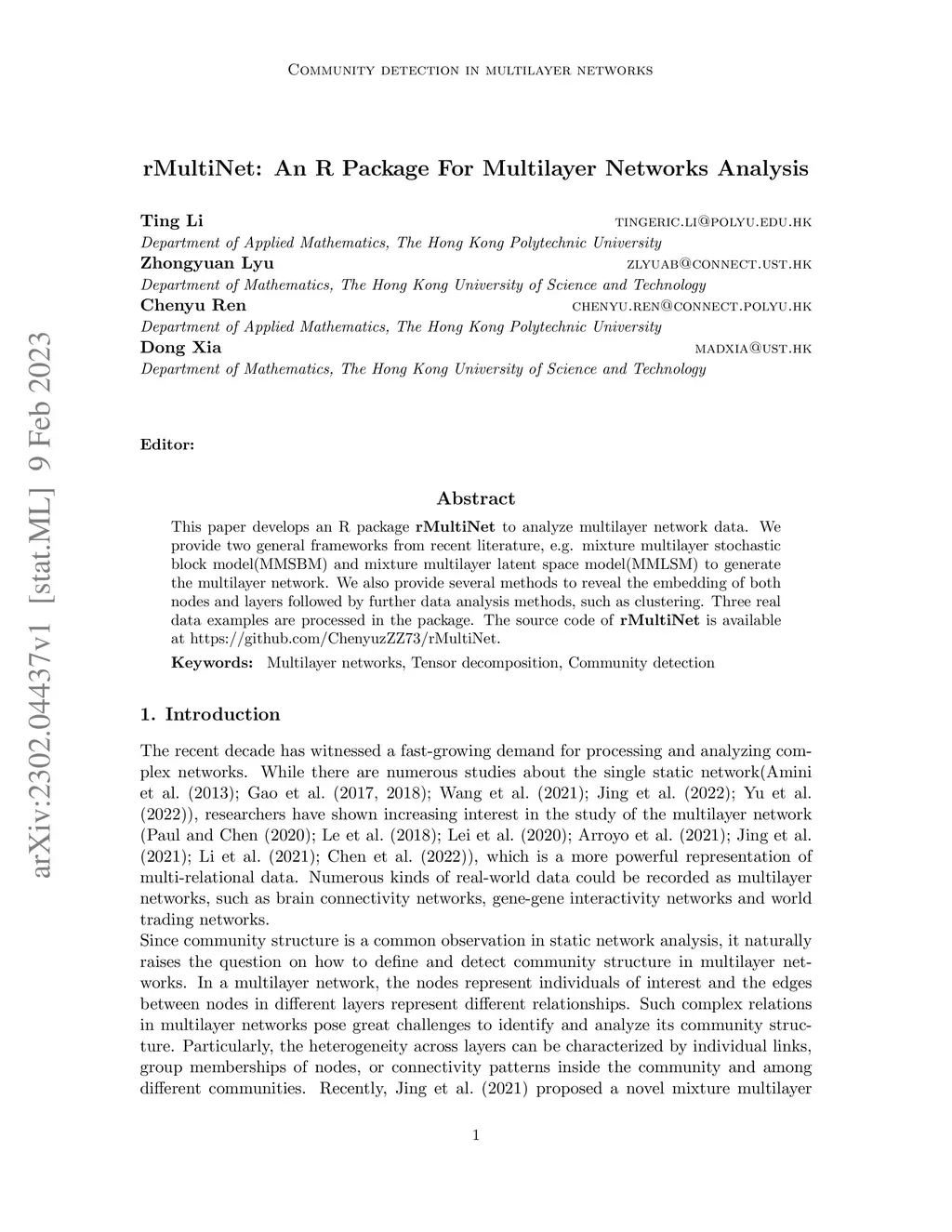 rMultiNet: An R Package For Multilayer Networks Analysis