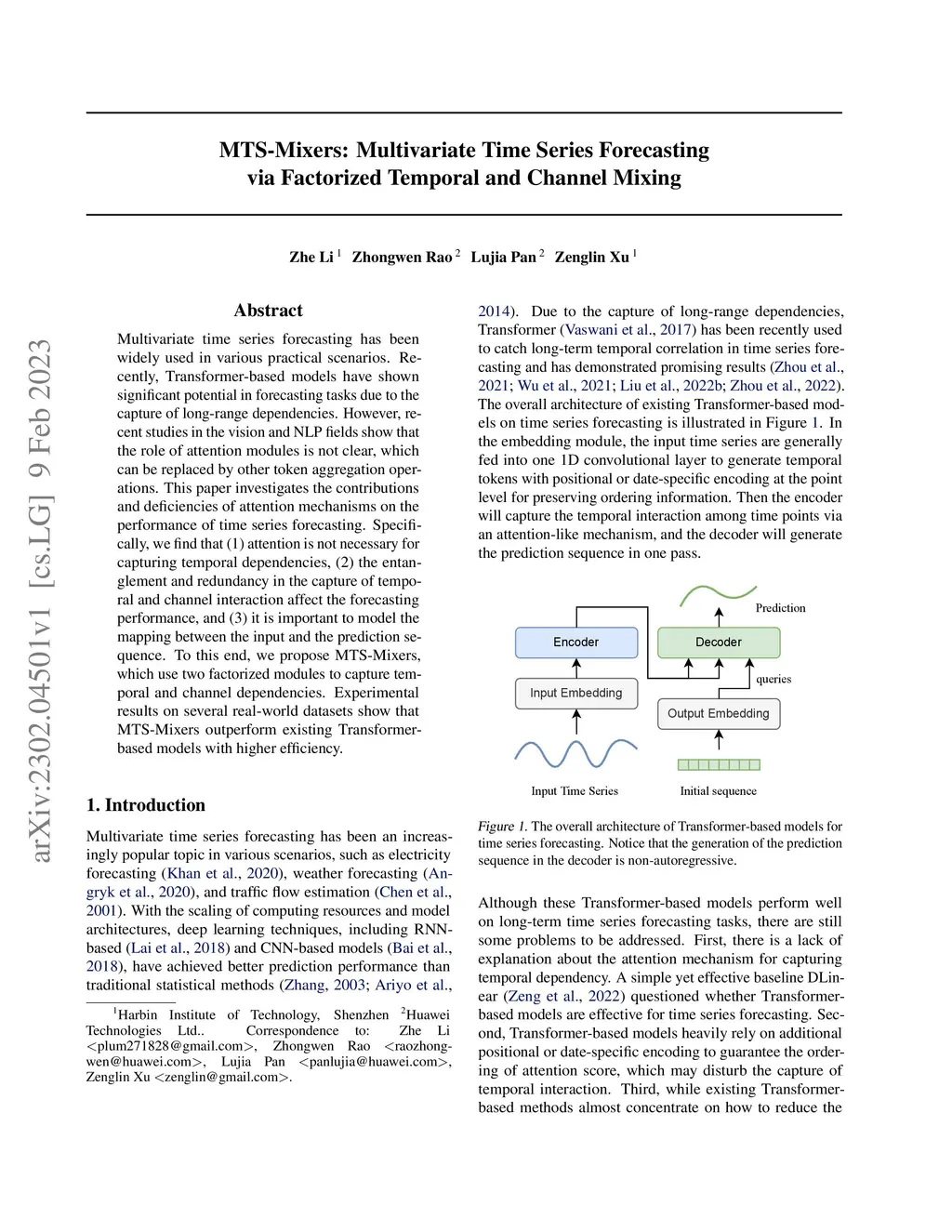 MTS-Mixers: Multivariate Time Series Forecasting via Factorized Temporal