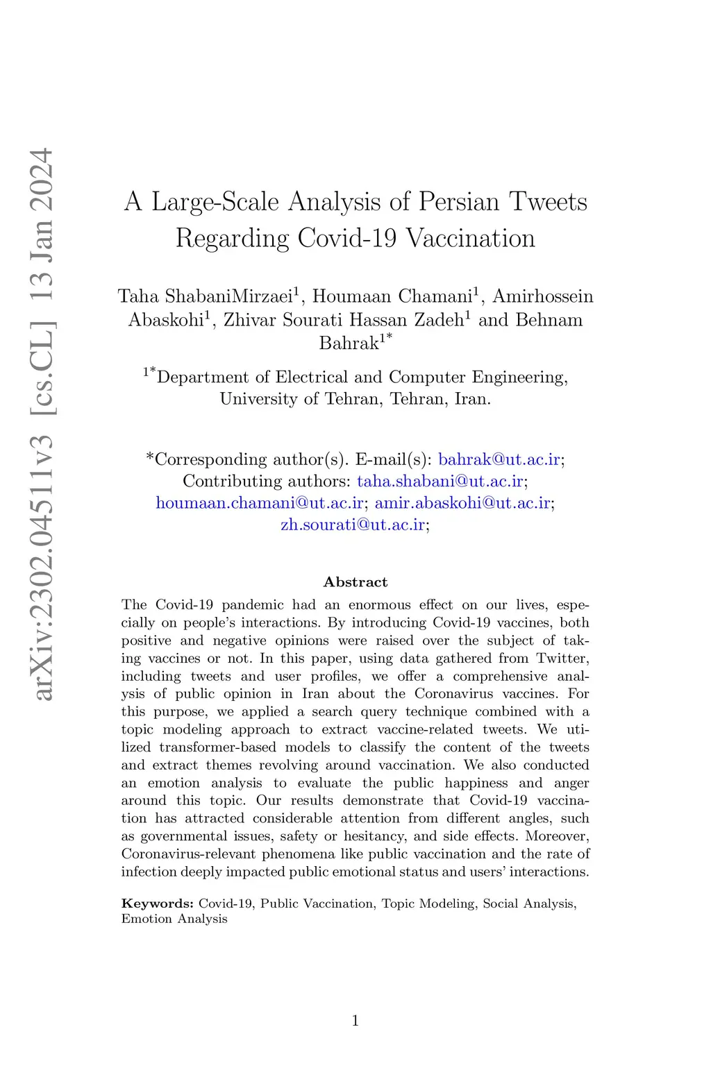 A Large-Scale Analysis of Persian Tweets Regarding Covid-19 Vaccination