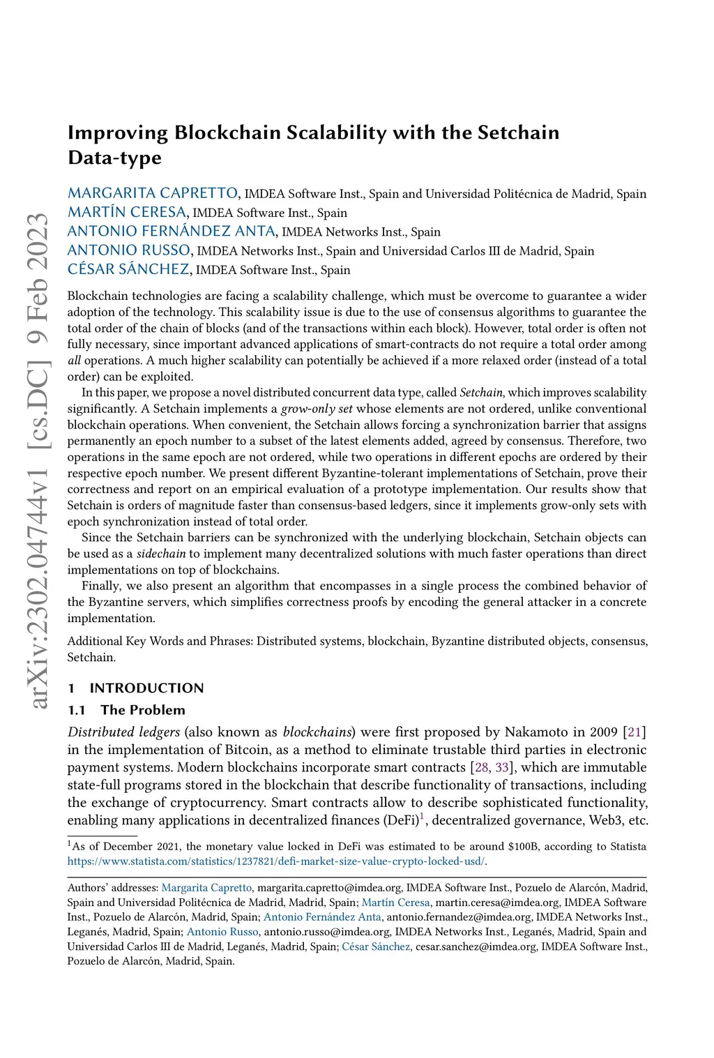 Improving Blockchain Scalability with the Setchain Data-type
