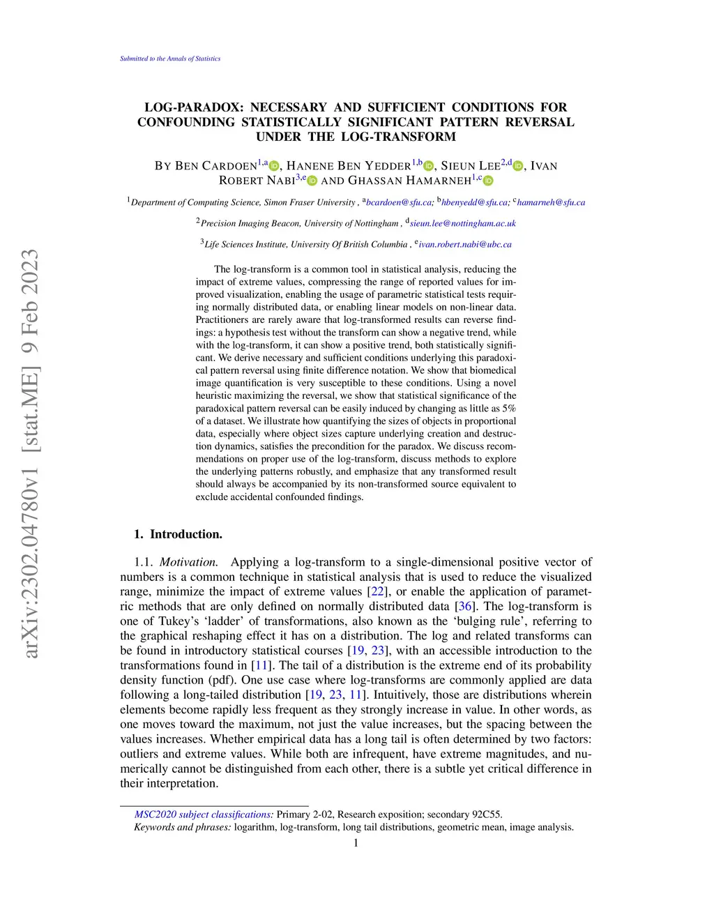 The log-transform is a common tool in statistical analysis, reducing the impact of extreme values, compressing the range of reported values for improved visualization, enabling the usage of parametric statistical tests requiring normally distributed data, or enabling linear models on non-linear data. Practitioners are rarely aware that log-transformed results can reverse findings: a hypothesis test without the transform can show a negative trend, while with the log-transform, it can show a positive trend, both statistically significant. We derive necessary and sufficient conditions underlying this paradoxical pattern reversal using finite difference notation. We show that biomedical image quantification is very susceptible to these conditions. Using a novel heuristic maximizing the reversal, we show that statistical significance of the paradoxical pattern reversal can be easily induced by changing as little as 5% of a dataset. We illustrate how quantifying the sizes of objects in proportional data, especially where object sizes capture underlying creation and destruction dynamics, satisfies the precondition for the paradox. We discuss recommendations on proper use of the log-transform, discuss methods to explore the underlying patterns robustly, and emphasize that any transformed result should always be accompanied by its non-transformed source equivalent to exclude accidental confounded findings.