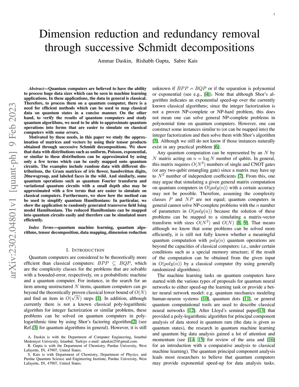 Quantum computers are believed to have the ability to process huge data sizes which can be seen in machine learning applications. In these applications, the data in general is classical. Therefore, to process them on a quantum computer, there is a need for efficient methods which can be used to map classical data on quantum states in a concise manner. On the other hand, to verify the results of quantum computers and study quantum algorithms, we need to be able to approximate quantum operations into forms that are easier to simulate on classical computers with some errors. Motivated by these needs, in this paper we study the approximation of matrices and vectors by using their tensor products obtained through successive Schmidt decompositions. We show that data with distributions such as uniform, Poisson, exponential, or similar to these distributions can be approximated by using only a few terms which can be easily mapped onto quantum circuits. The examples include random data with different distributions, the Gram matrices of iris flower, handwritten digits, 20newsgroup, and labeled faces in the wild. And similarly, some quantum operations such as quantum Fourier transform and variational quantum circuits with a small depth also may be approximated with a few terms that are easier to simulate on classical computers. Furthermore, we show how the method can be used to simplify quantum Hamiltonians: In particular, we show the application to randomly generated transverse field Ising model Hamiltonians. The reduced Hamiltonians can be mapped into quantum circuits easily and therefore can be simulated more efficiently.