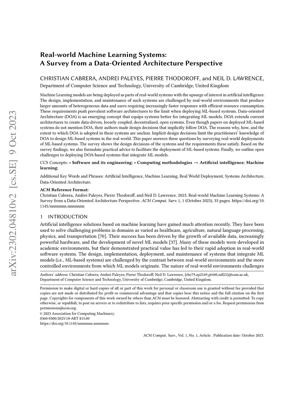 Engineers are deploying ML models as parts of real-world systems with the upsurge of AI technologies. Real-world environments challenge the deployment of such systems because these environments produce large amounts of heterogeneous data, and users require increasingly efficient responses. These requirements push prevalent software architectures to the limit when deploying ML-based systems. Data-oriented Architecture (DOA) is an emerging style that equips systems better for integrating ML models. Even though papers on deployed ML systems do not mention DOA, their authors made design decisions that implicitly follow DOA. Implicit decisions create a knowledge gap, limiting the practitioners' ability to implement ML-based systems. \hlb{This paper surveys why, how, and to what extent practitioners have adopted DOA to implement and deploy ML-based systems.} We overcome the knowledge gap by answering these questions and explicitly showing the design decisions and practices behind these systems. The survey follows a well-known systematic and semi-automated methodology for reviewing papers in software engineering. The majority of reviewed works partially adopt DOA. Such an adoption enables systems to address requirements such as Big Data management, low latency processing, resource management, security and privacy. Based on these findings, we formulate practical advice to facilitate the deployment of ML-based systems.