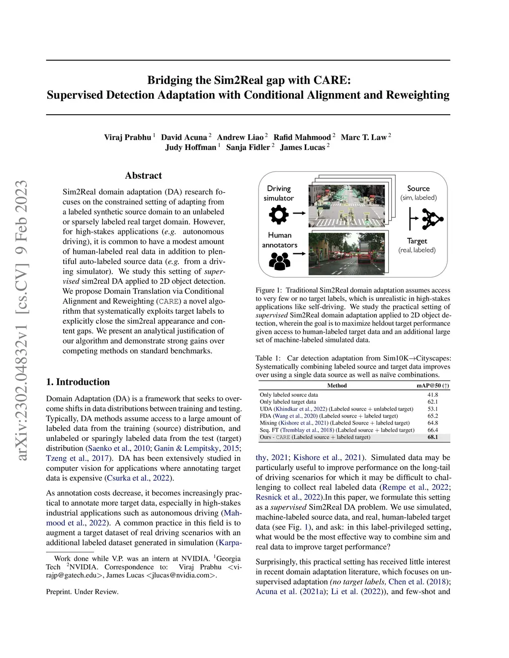 Bridging the Sim2Real gap with CARE: Supervised Detection Adaptation