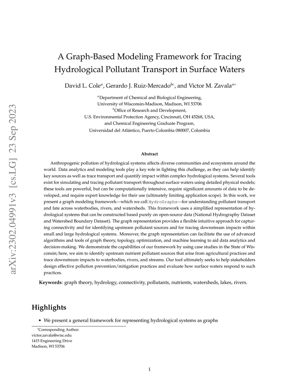 A Graph-Based Modeling Framework for Tracing Hydrological Pollutant