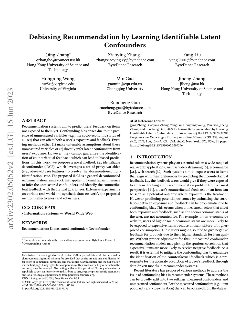 Debiasing Recommendation by Learning Identifiable Latent Confounders