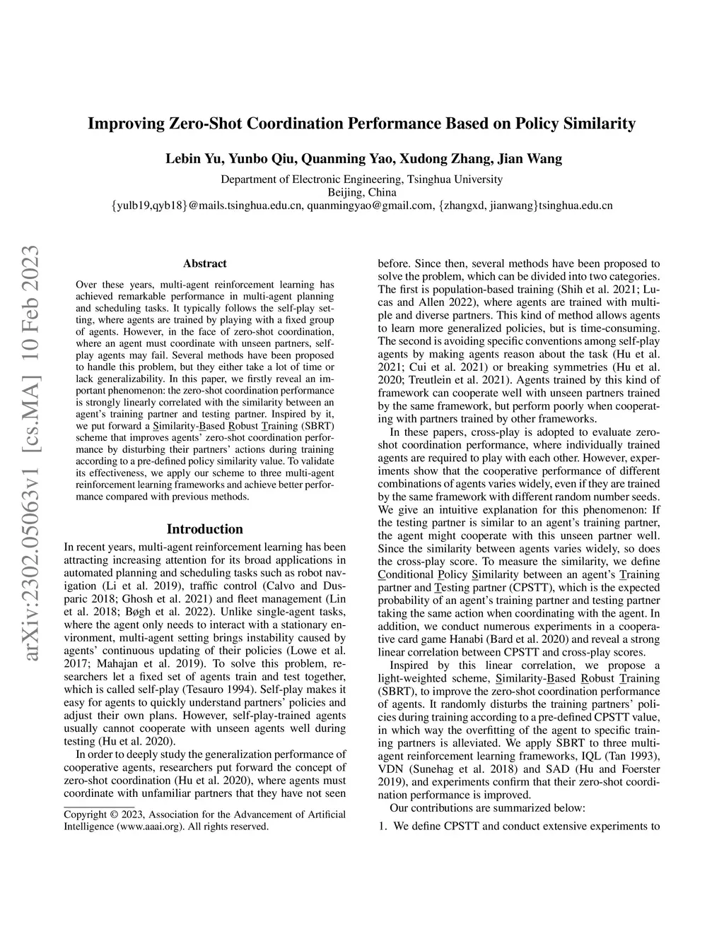 Over these years, multi-agent reinforcement learning has achieved remarkable performance in multi-agent planning and scheduling tasks. It typically follows the self-play setting, where agents are trained by playing with a fixed group of agents. However, in the face of zero-shot coordination, where an agent must coordinate with unseen partners, self-play agents may fail. Several methods have been proposed to handle this problem, but they either take a lot of time or lack generalizability. In this paper, we firstly reveal an important phenomenon: the zero-shot coordination performance is strongly linearly correlated with the similarity between an agent's training partner and testing partner. Inspired by it, we put forward a Similarity-Based Robust Training (SBRT) scheme that improves agents' zero-shot coordination performance by disturbing their partners' actions during training according to a pre-defined policy similarity value. To validate its effectiveness, we apply our scheme to three multi-agent reinforcement learning frameworks and achieve better performance compared with previous methods.