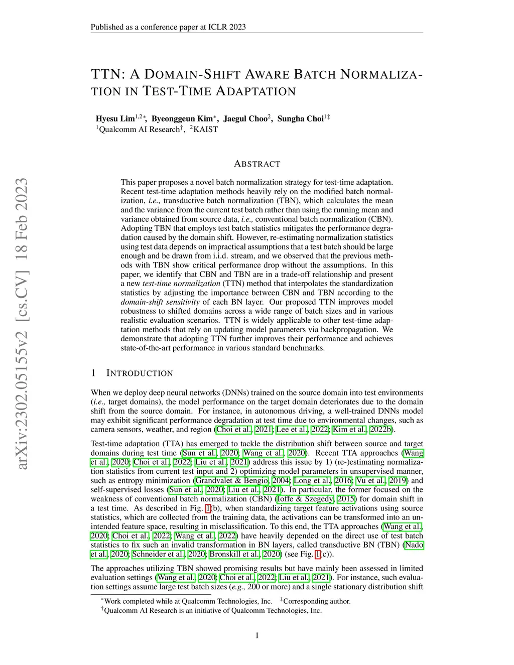 TTN: A Domain-Shift Aware Batch Normalization in Test-Time Adaptation