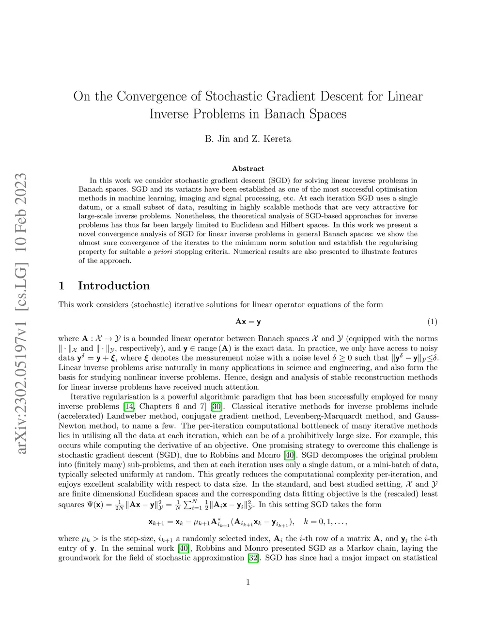 On the Convergence of Stochastic Gradient Descent for Linear Inverse
