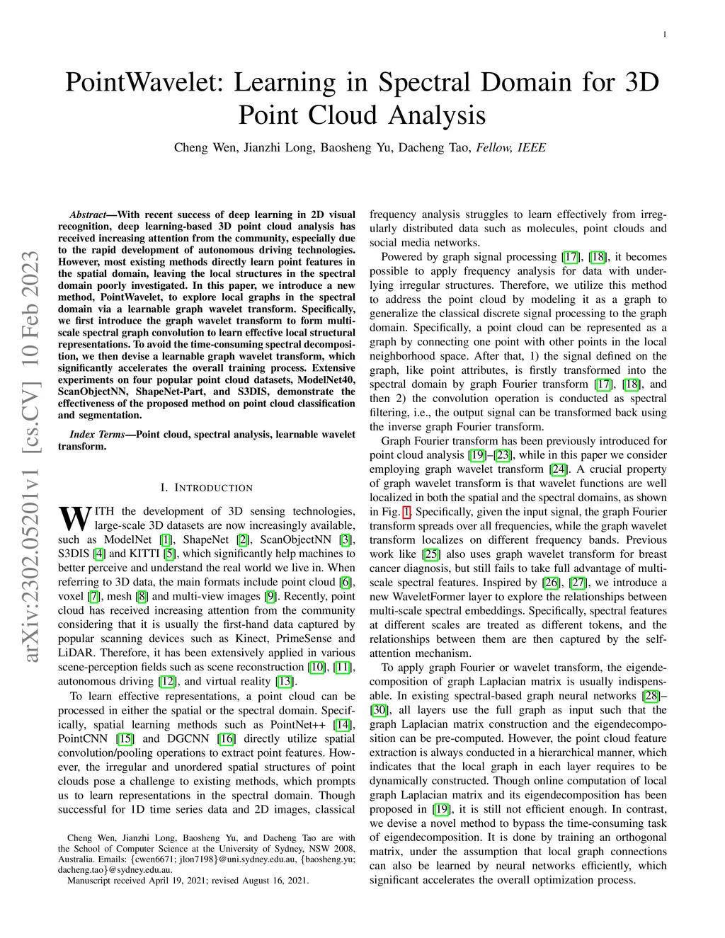 PointWavelet: Learning in Spectral Domain for 3D Point Cloud Analysis
