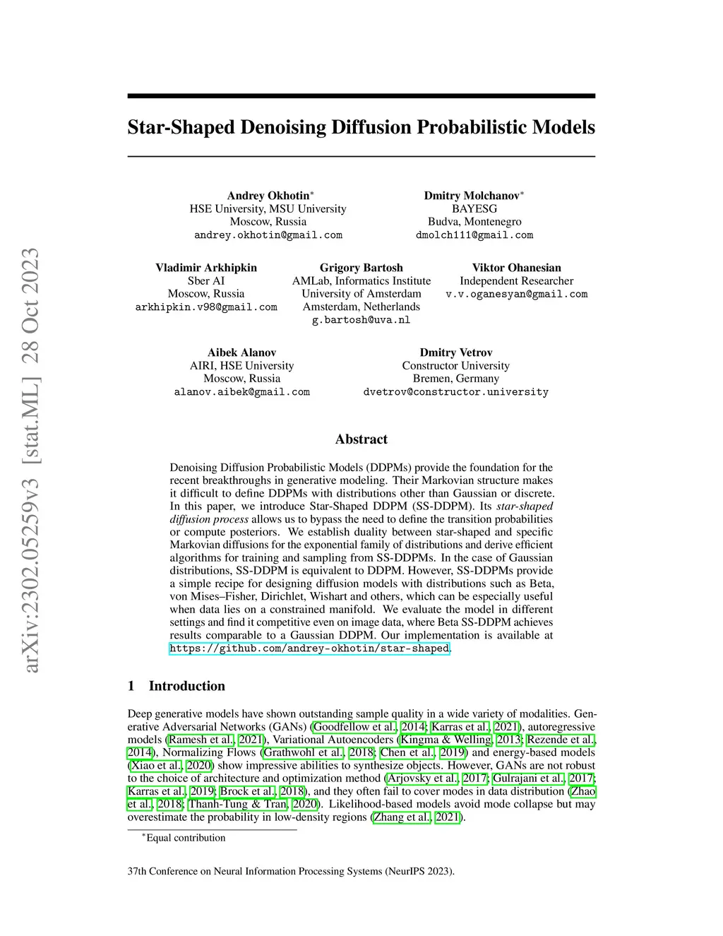 Star-Shaped Denoising Diffusion Probabilistic Models