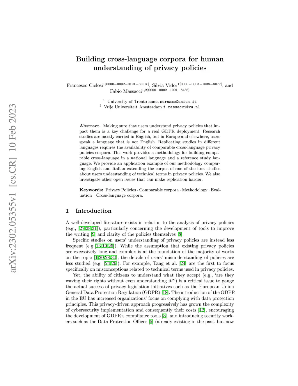 Making sure that users understand privacy policies that impact them is a key challenge for a real GDPR deployment. Research studies are mostly carried in English, but in Europe and elsewhere, users speak a language that is not English. Replicating studies in different languages requires the availability of comparable cross-language privacy policies corpora. This work provides a methodology for building comparable cross-language in a national language and a reference study language. We provide an application example of our methodology comparing English and Italian extending the corpus of one of the first studies about users understanding of technical terms in privacy policies. We also investigate other open issues that can make replication harder.