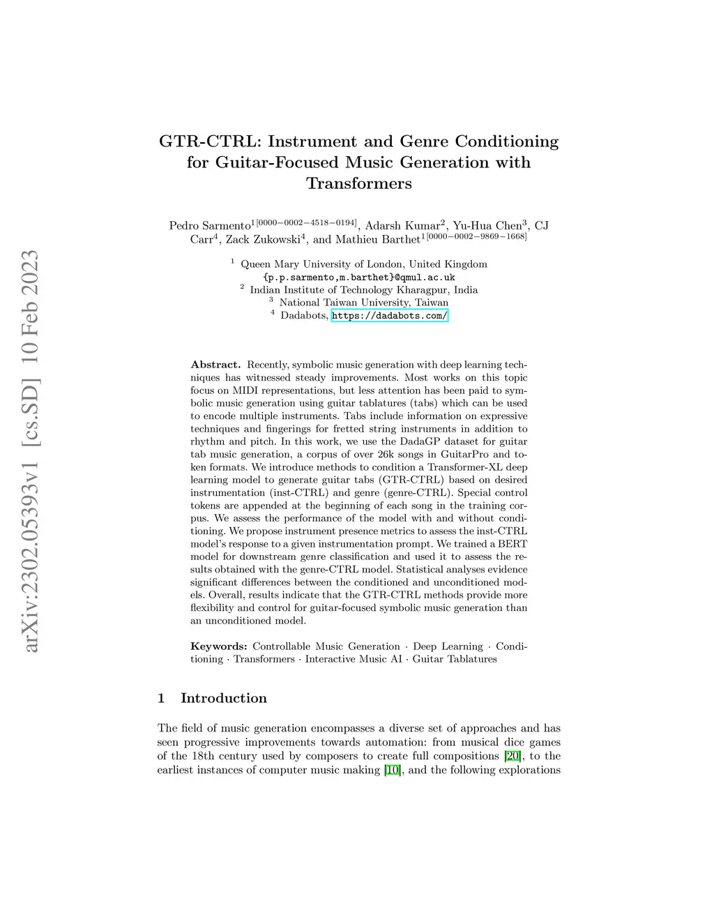 GTR-CTRL: Instrument and Genre Conditioning for Guitar-Focused Music