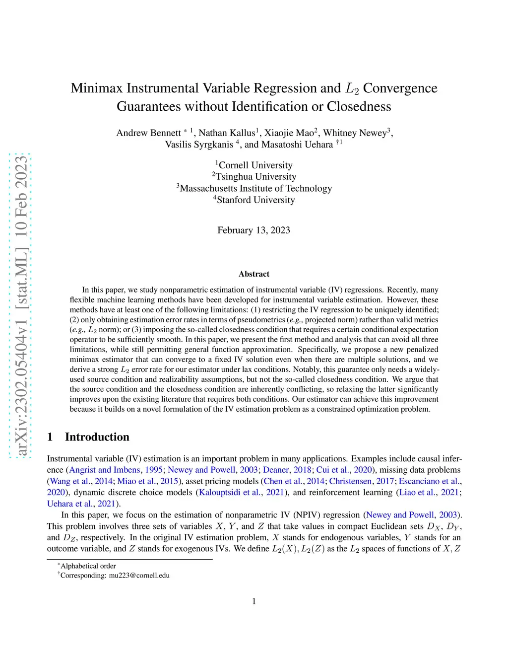 In this paper, we study nonparametric estimation of instrumental variable (IV) regressions. Recently, many flexible machine learning methods have been developed for instrumental variable estimation. However, these methods have at least one of the following limitations: (1) restricting the IV regression to be uniquely identified; (2) only obtaining estimation error rates in terms of pseudometrics (\emph{e.g.,} projected norm) rather than valid metrics (\emph{e.g.,} norm); or (3) imposing the so-called closedness condition that requires a certain conditional expectation operator to be sufficiently smooth. In this paper, we present the first method and analysis that can avoid all three limitations, while still permitting general function approximation. Specifically, we propose a new penalized minimax estimator that can converge to a fixed IV solution even when there are multiple solutions, and we derive a strong error rate for our estimator under lax conditions. Notably, this guarantee only needs a widely-used source condition and realizability assumptions, but not the so-called closedness condition. We argue that the source condition and the closedness condition are inherently conflicting, so relaxing the latter significantly improves upon the existing literature that requires both conditions. Our estimator can achieve this improvement because it builds on a novel formulation of the IV estimation problem as a constrained optimization problem.