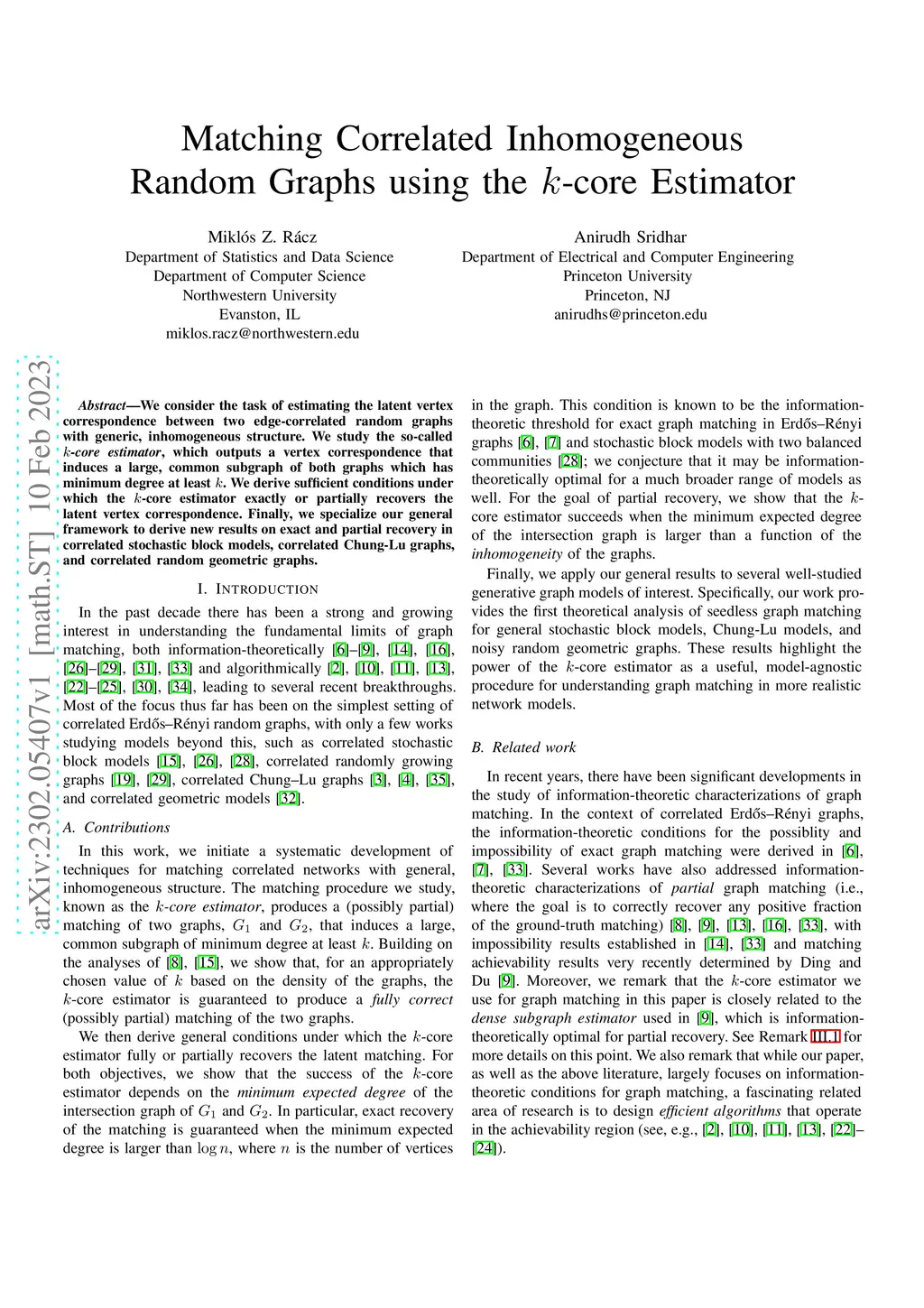 We consider the task of estimating the latent vertex correspondence between two edge-correlated random graphs with generic, inhomogeneous structure. We study the so-called \emph{-core estimator}, which outputs a vertex correspondence that induces a large, common subgraph of both graphs which has minimum degree at least . We derive sufficient conditions under which the -core estimator exactly or partially recovers the latent vertex correspondence. Finally, we specialize our general framework to derive new results on exact and partial recovery in correlated stochastic block models, correlated Chung-Lu graphs, and correlated random geometric graphs.