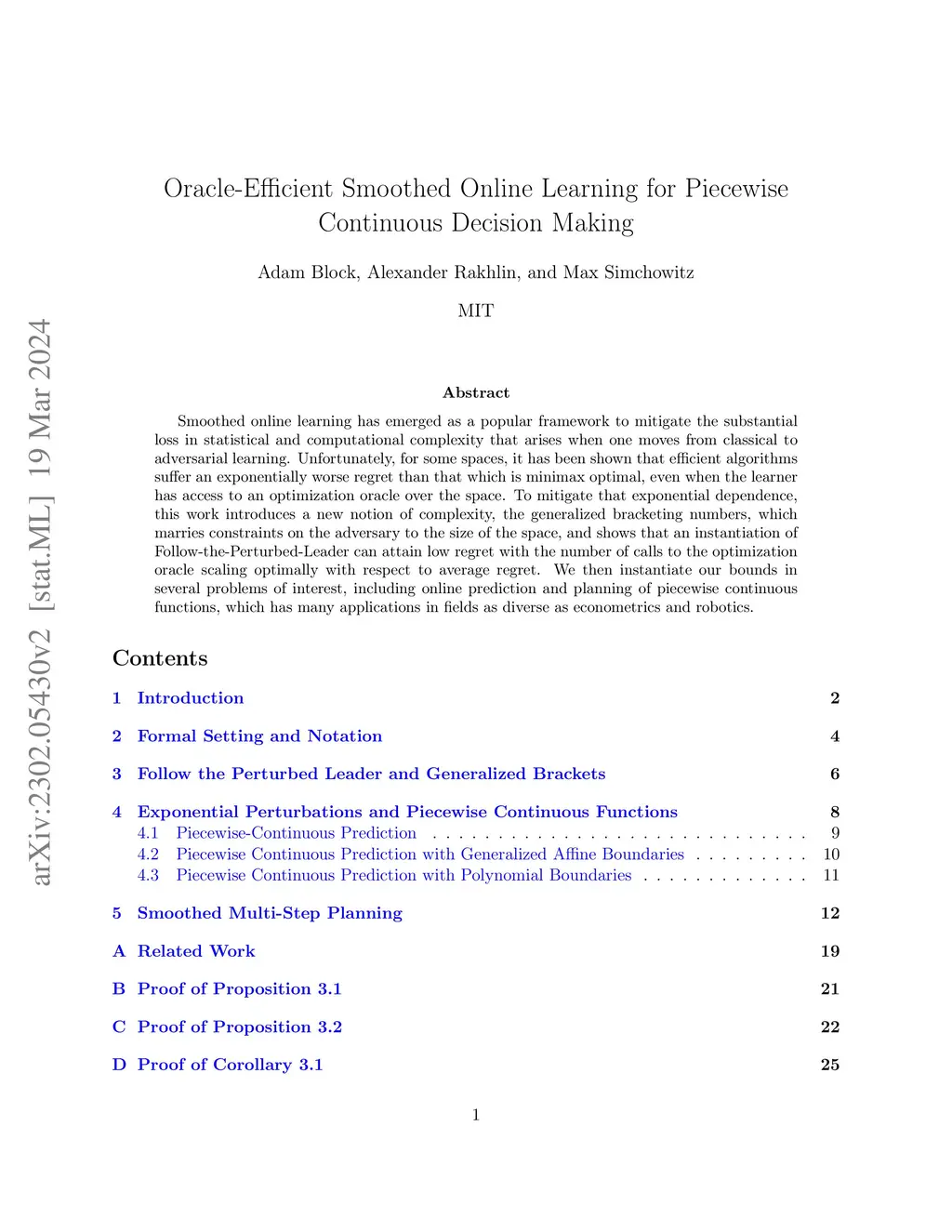 Smoothed online learning has emerged as a popular framework to mitigate the substantial loss in statistical and computational complexity that arises when one moves from classical to adversarial learning. Unfortunately, for some spaces, it has been shown that efficient algorithms suffer an exponentially worse regret than that which is minimax optimal, even when the learner has access to an optimization oracle over the space. To mitigate that exponential dependence, this work introduces a new notion of complexity, the generalized bracketing numbers, which marries constraints on the adversary to the size of the space, and shows that an instantiation of Follow-the-Perturbed-Leader can attain low regret with the number of calls to the optimization oracle scaling optimally with respect to average regret. We then instantiate our bounds in several problems of interest, including online prediction and planning of piecewise continuous functions, which has many applications in fields as diverse as econometrics and robotics.