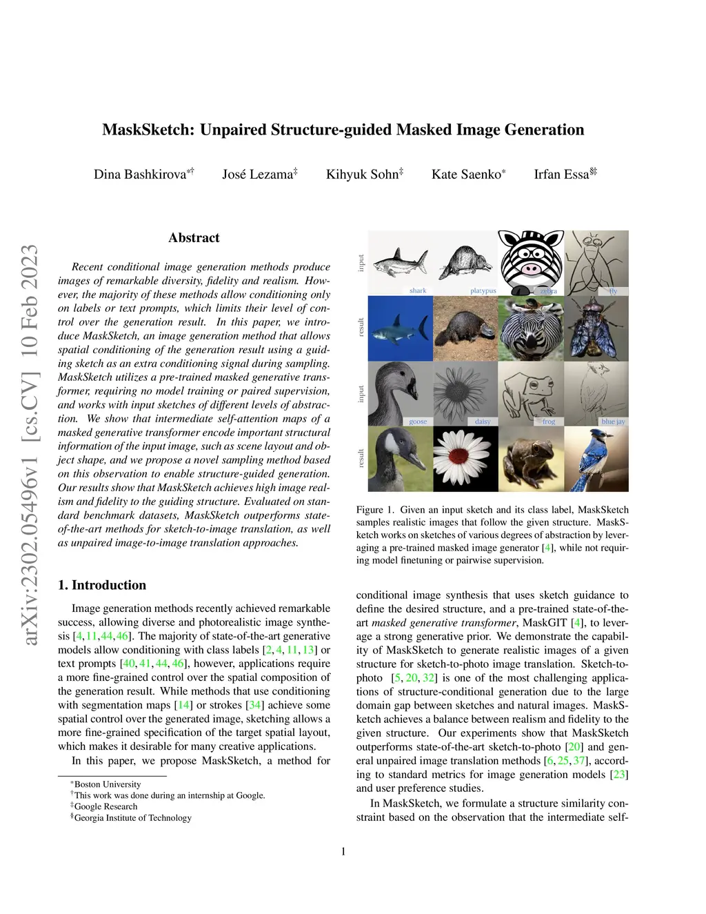 MaskSketch: Unpaired Structure-guided Masked Image Generation