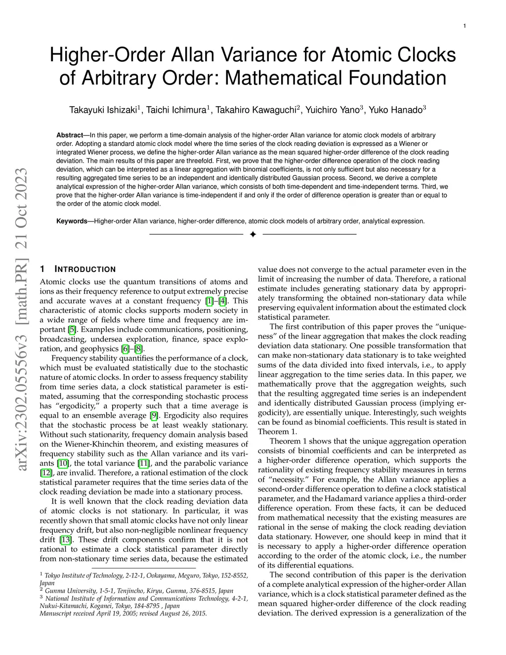 Higher-Order Allan Variance for Atomic Clocks of Arbitrary Order: