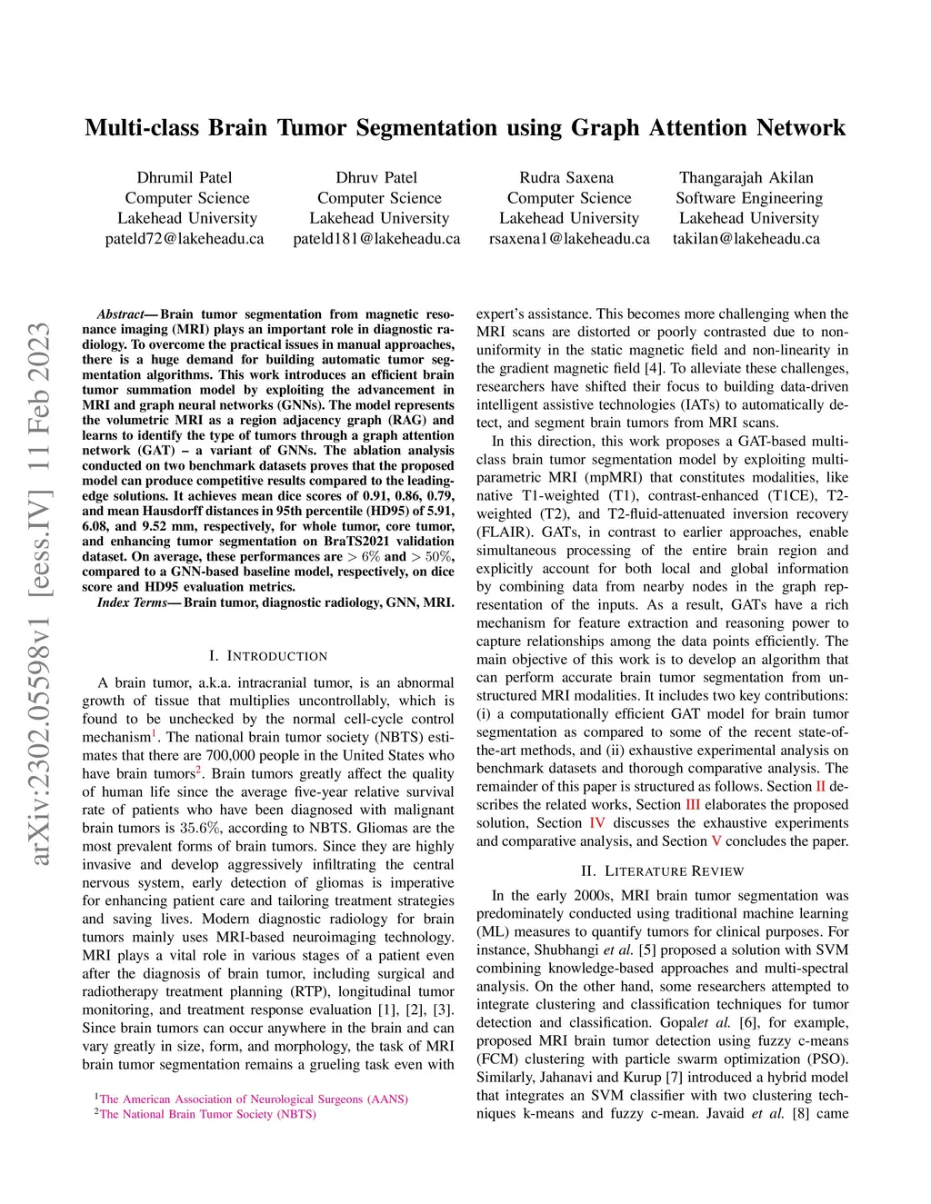 Multi-class Brain Tumor Segmentation using Graph Attention Network