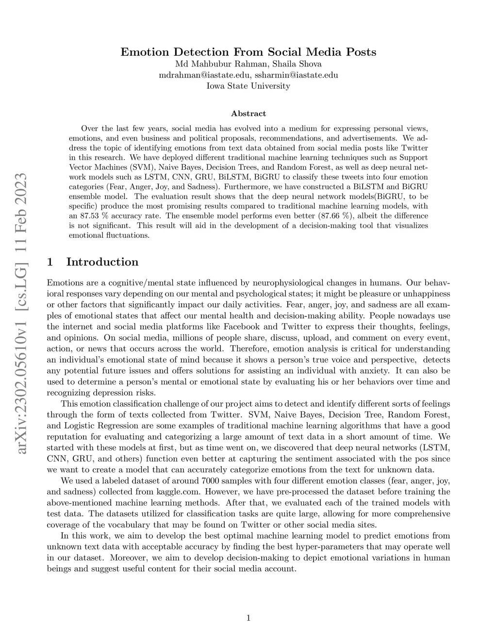 Emotion Detection From Social Media Posts