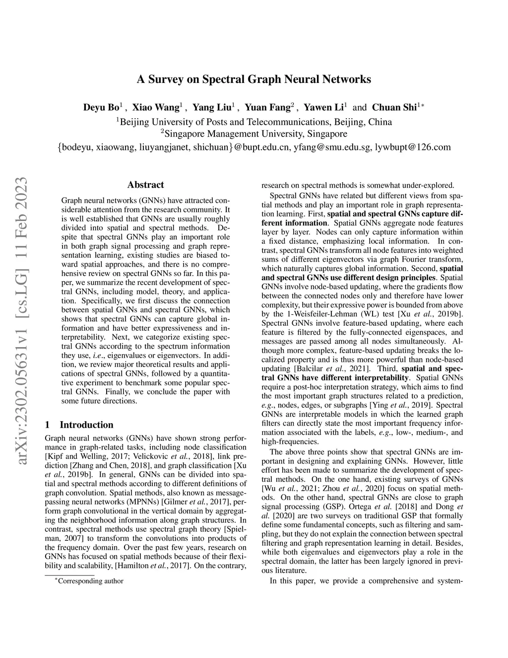 A Survey on Spectral Graph Neural Networks