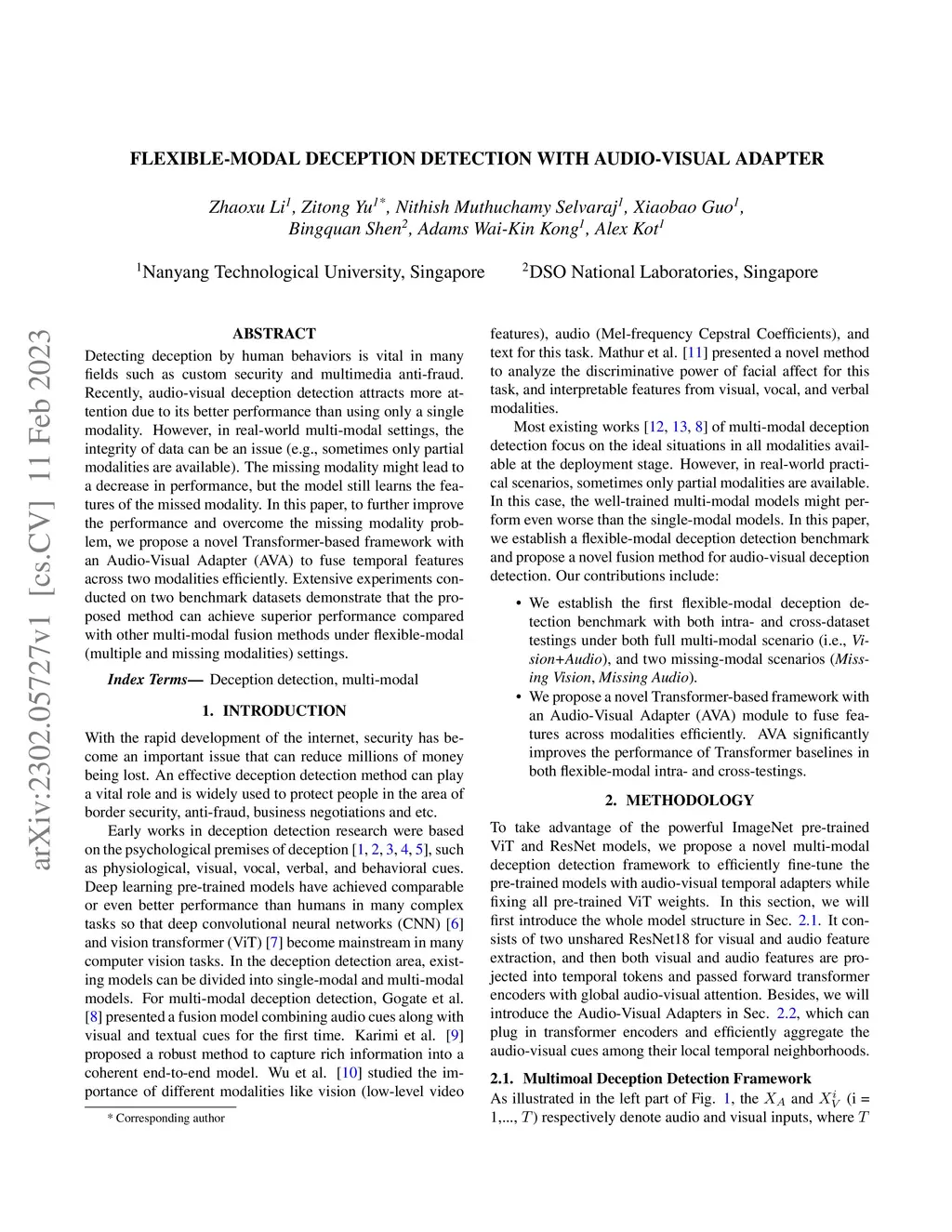Flexible-modal Deception Detection with Audio-Visual Adapter
