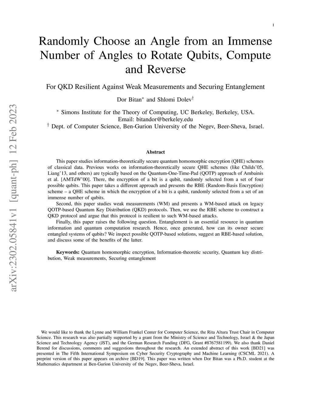 This paper studies information-theoretically secure quantum homomorphic encryption (QHE) schemes of classical data. Previous works on information-theoretically secure QHE schemes (like Childs'05, Liang'13, and others) are typically based on the Quantum-One-Time-Pad (QOTP) approach of Ambainis et al. [AMTdW'00]. There, the encryption of a bit is a qubit, randomly selected from a set of four possible qubits. This paper takes a different approach and presents the RBE (Random-Basis Encryption) scheme -- a QHE scheme in which the encryption of a bit is a qubit, randomly selected from a set of an immense number of qubits. Second, this paper studies weak measurements (WM) and presents a WM-based attack on legacy QOTP-based Quantum Key Distribution (QKD) protocols. Then, we use the RBE scheme to construct a QKD protocol and argue that this protocol is resilient to such WM-based attacks. Finally, this paper raises the following question. Entanglement is an essential resource in quantum information and quantum computation research. Hence, once generated, how can its owner secure entangled systems of qubits? We inspect possible QOTP-based solutions, suggest an RBE-based solution, and discuss some of the benefits of the latter.
