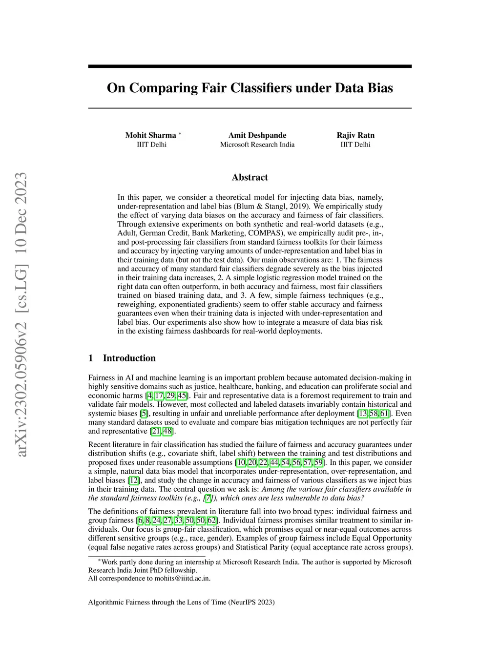 On Comparing Fair Classifiers under Data Bias