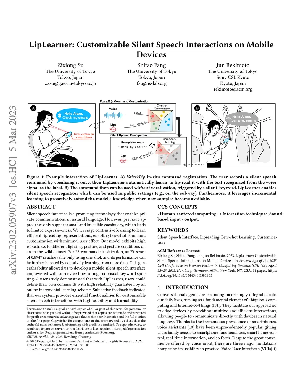 LipLearner: Customizable Silent Speech Interactions on Mobile Devices