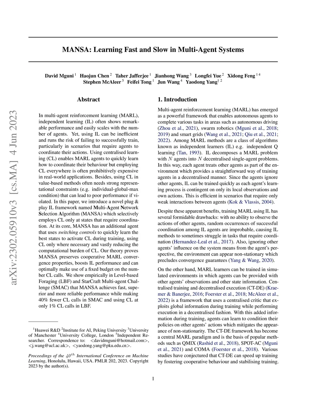 MANSA: Learning Fast and Slow in Multi-Agent Systems